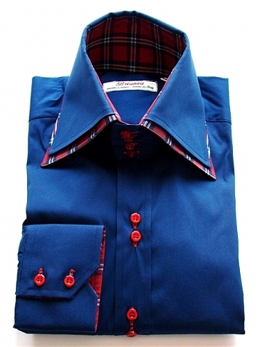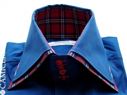 Описание товара: Элегантная мужская сорочка с двойным воротником на 4-х пуговицах и манжетами на 2-х пуговицах от итальянской марки "Camiceria Brianza". Сорочка имеет два воротника, внешний из которых выполнен из ткани аналогичной ткани сорочки, а внутренний изготовлен из ткани в красно-синюю клетку. Внутренняя часть манжет контрастная (выполнена из ткани в красно-синюю клетку, как и внутренний воротник). Сорочка застёгивается на сдвоенные пуговицы красного цвета. Нагрудный карман отсутствует.