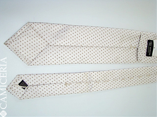 Элегантный шёлковый галстук ручной работы Eddy Monetti. Изготовлен по классической итальянской технологии с использованием декоративной прошивки сплошной нитью с внутренней стороны галстука. Широкий и узкий концы галстука укреплены стежками, пришитыми вручную.